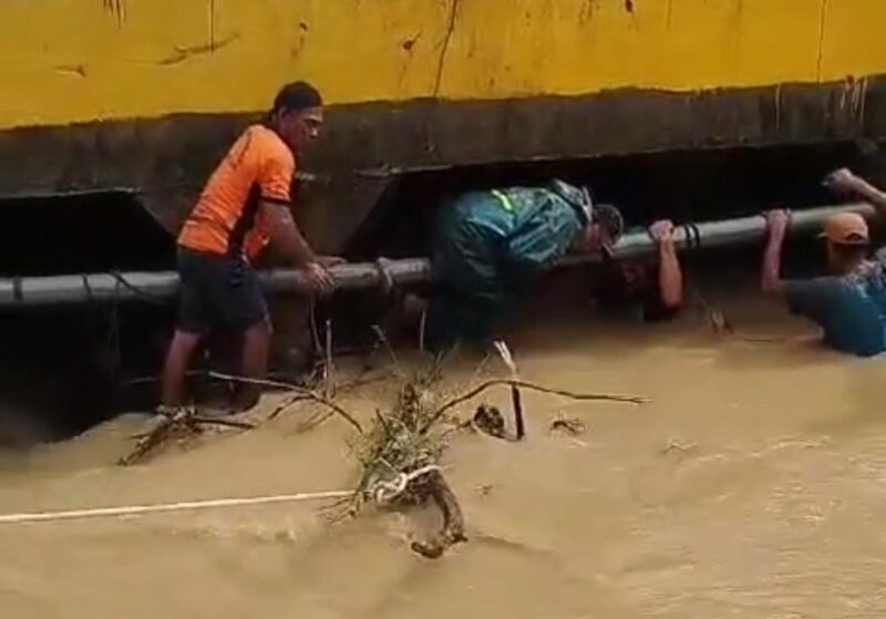 KENDARI, BULETINSULTRA.COM – Dinas Lingkungan Hidup dan Kehutanan (DLHK) Kota Kendari dan Badan Penanggulangan Bencana (BPBD) Kota Kendari membersihkan sampah yang menyumbat aliran air di Kali Andonuhu pada Kamis (16/5/2024).