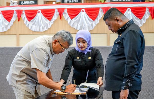 Penandatanganan dilakukan Penjabat Wali Kota Muhammad Yusup dan Ketua DPRD Kota Kendari, Subhan dalam rapat paripurna di Gedung DPRD Kota Kendari pada Selasa (2/7/2024).